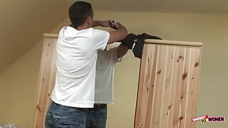 Üvey kız kardeşimle ebeveynlerimizin odasında sikişirken bakış açısı, sonunda götüne boşalıyorum