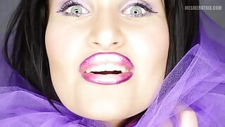 Koyu saçlı ateşli lexi dona bakış açısıyla yarak emdikten sonra ağzına boşalıyor